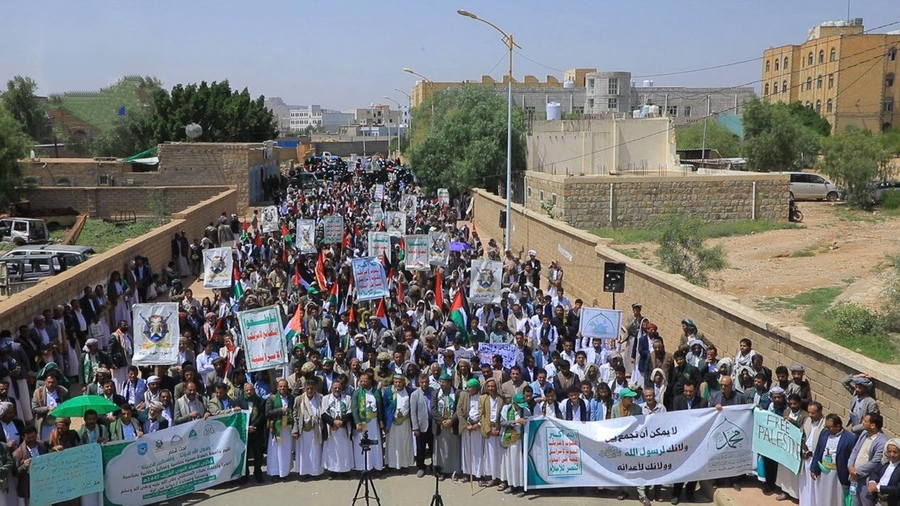 مشيرة حاشدة في جامعة صعدة دعماً لغزة وعمليات الجيش والأمن