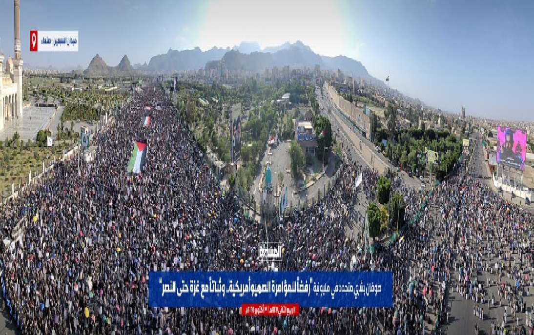 يمني برس || صنعاء: شاهد تفاصيل بيان المسيرات اليمانية المليونية الكبرى” رفضا للمؤامرة الصهيوأمريكية.. وثباتا مع غزة حتى النصر ” رصدنا لكم البيان بالفيديو مع بعض الصور البانورامية للحشد الأعظم في ميان العزة والكرامة بالسبعين بالعاصمة صنعاء.