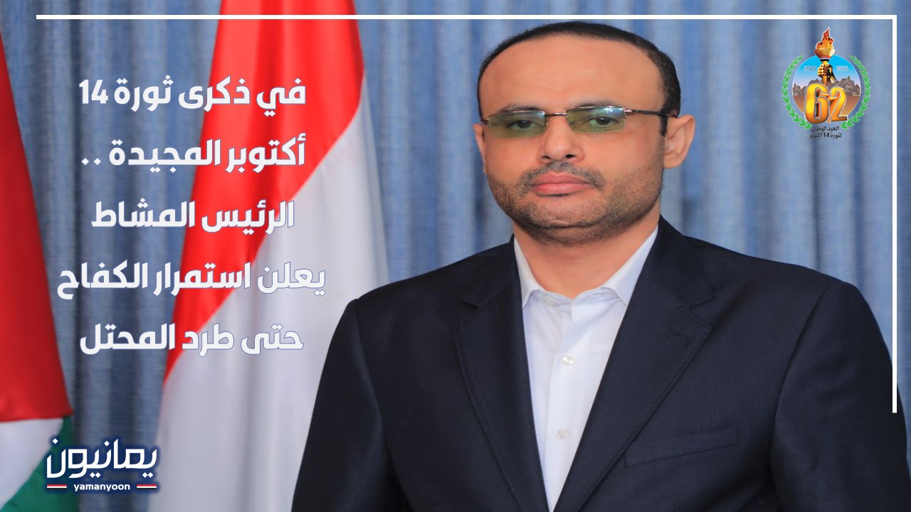 في ذكرة ثورة 14 أكتوبر المجيدة .. الرئيس المشاط يعلن استمرار الكفاح حتى طرد المحتل