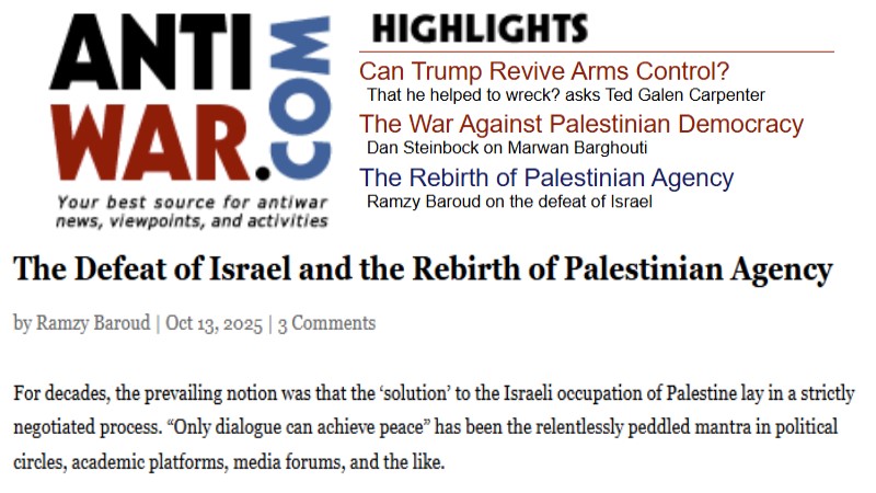 متابعات..| أكّـد موقع أمريكي أن طريق هزيمة الكيان الصهيوني وإزالة احتلاله عن فلسطين لا يمرّ عبر مسار التفاوض والحوار، بل عبر امتداد وتطور أشكال المقاومة المسلحة التي غيّرت قواعد الاشتباك وفرضت حقائق جديدة على الأرض. وأشَارَ موقع «Antiwar» الأمريكي -المعروف بموقفه المناهض للحرب- في تقرير حديث، إلى أن نماذج التسوية التقليدية -مثل اتّفاقات أوسلو- فشلت […]