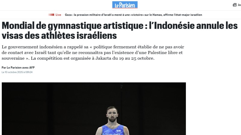 متابعات..|  جدّدت إندونيسيا موقفَها الثابتَ المناصر للقضية الفلسطينية بإعلانها استبعاد بعثة إسرائيلية من بطولة رياضية تقامُ على أراضيها. ووفق صحيفة لوباريزيان الفرنسية، ألغت السلطاتُ الإندونيسية تأشيرات دخول ستة رياضيين إسرائيليين، بينهم البطل الأولمبي أرتم دولغوبيات، بناءً على طلب رسمي من الاتّحاد الإندونيسي للجمباز؛ ما يؤكّد استبعادهم من بطولة العالم للجمباز الفني، المقرّر إقامتها في العاصمة […]