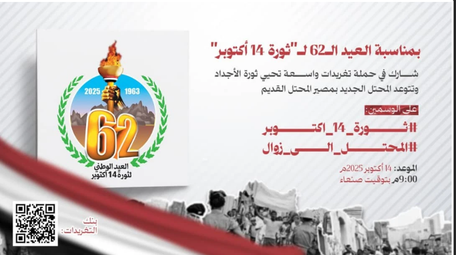حملة تغريدات مساء اليوم بمناسبة ثورة 14 أكتوبر في أكتوبر 14, 2025 شارك أكتوبر 14, 2025 حملة تغريدات مساء اليوم بمناسبة ثورة 14 أكتوبر الذهاب إلى المصدر شارك FacebookTwitterGoogle+ReddItWhatsAppPinterestالبريد الإلكتروني