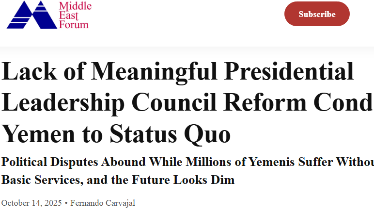 متابعات..| نشر موقع “ميدل ايست فورم” تحليلاً للكاتب فرناندو كارفاخال ، وهذا نصه: كان لعملية Rough Rider، وهي الحملة العسكرية الأمريكية على اليمن في مارس وأبريل 2025، تأثير ضئيل على الحوثيين… لم يقتصر الأمر على تجديد الحوثيين لضرباتهم على السفن المدنية عبر باب المندب والضربات الصاروخية على إسرائيل، بل إن خصومهم اليمنيين لا يزالون مكتوفي […]