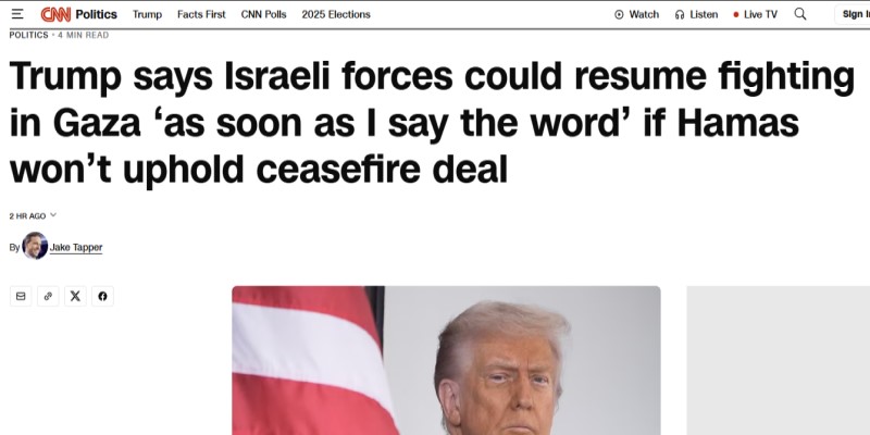 ترامب يهدِّد باستئناف حرب الإبادة في غزة: «بمُجَـرّد كلمة مني» لنتنياهو