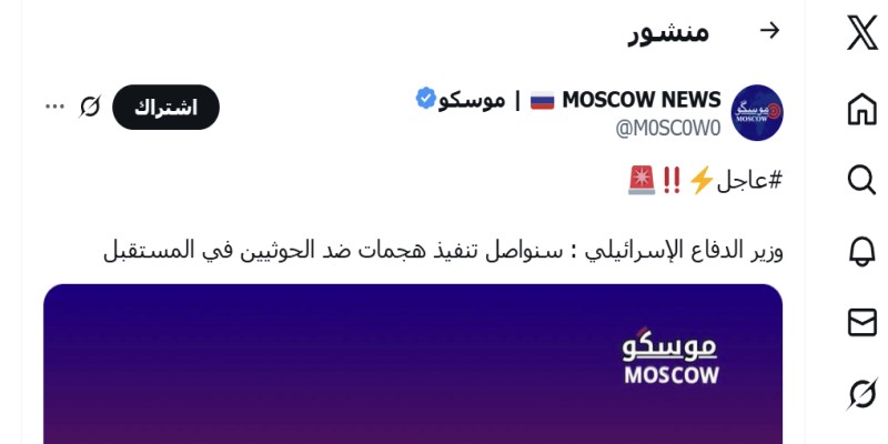 موسكو نيوز: (إسرائيل) تؤكّـد استمرارَ هجماتها ضد اليمن مستقبلًا.. وهذا ما قاله وزير الحرب الصهيوني