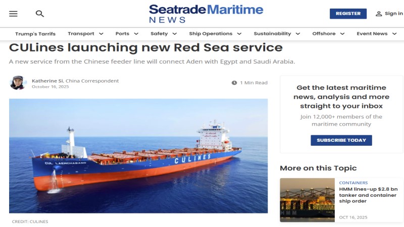 متابعات..| أعلنت شركة CULines الصينية الرائدة في مجال خدمات الشحن البحري عن إطلاق خدمة بحرية جديدة في البحر الأحمر تربط بين ميناء العين السخنة في مصر، وميناء جدة الإسلامي في المملكة العربية السعوديّة، وميناء عدن في اليمن، تحت مسمى خدمة “السخنة–جدة–عدن” (SJA). وبحسب ما نقله موقع سيتريد Seatrade Maritime المتخصص في أخبار قطاع الشحن البحري، […]