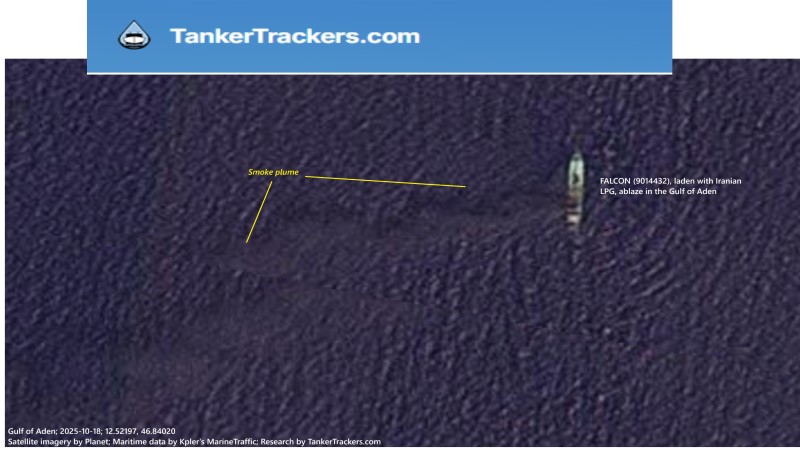 متابعات..| كشف موقع TankerTrackers المتخصص بتتبع حركة السفن، أن ناقلة الغاز المسال «فالكون» (9014432)، التي اندلعت فيها النيران اليوم في خليج عدن، كانت محمّلةً بشحنة من الغاز المسال الإيراني انطلقت من ميناء عسلوية في 25 سبتمبر 2025. وزعم الموقعُ الأمريكي ترجيحَه أنها كانت في طريقها إلى ميناء رأس عيسى في اليمن لتزويدِ حكومة صنعاء. وبحسب […]