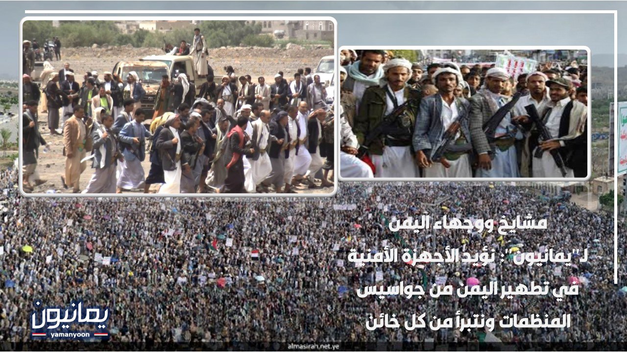 مشايخ ووجهاء اليمن لـ”يمانيون”: نؤيد الأجهزة الأمنية في تطهير اليمن من جواسيس المنظمات ونتبرأ من كل خائن