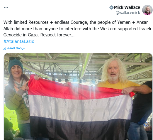 النائب في البرلمان الإيرلندي: اليمن أظهر شجاعة استثنائية في التصدي لـ«الإبادة الجماعية الإسرائيلية المدعومة من الغرب» وجهودُه فاقت ما قدّمه كُلُّ العالَم