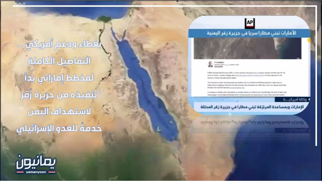 كشفت وكالة أسوشيتد برس الأمريكية، في تقرير استقصائي مدعوم بصورٍ فضائية حديثة، عن نشاطٍ إماراتي مكثّف في جزيرة زُقر اليمنية الواقعة في قلب البحر الأحمر، يتضمن إنشاء مطار ورصيف بحري ،وتُشير الدلائل إلى أن المشروع يُقام بالتنسيق مع مجموعات مسلحة جنوبية موالية لأبوظبي، في إطار مخطط يخدم مصالح الولايات المتحدة وإسرائيل، ويهدف إلى تطويق اليمن […]