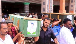 تشييع كبير لشهداء الغارات الصهيونية على محافظة الحديدة